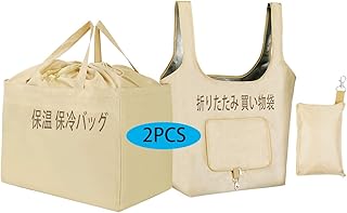 エコバッグ レジカゴバッグ 二点セット 保温 保冷バッグ 折りたたみ 買い物袋 両面防水 コンビニバッグ 大容量 人気 おしゃれ 軽量 水洗い可 (カーキ)
